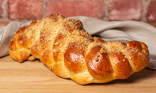 Skład: mąka pszenna, mleko, masło, cukier, drożdże, sól, jaja, cukier brązowy.