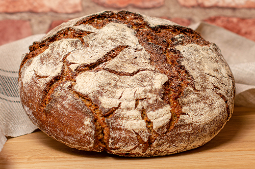 Chleb wypiekany bezpośrednio na kamieniu szamotowym. Skład: mąka żytnia chlebowa, mąka żytnia razowa, zakwaszone ziarno samopszy, zakwas żytni, woda, miód, sól, kolendra, kminek, anyż.